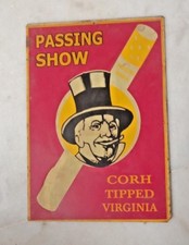 OLD VINTAGE PASSING SHOW CORH TIPPED VIRGINIA LITHO PRINT TIN SIGN BOARD